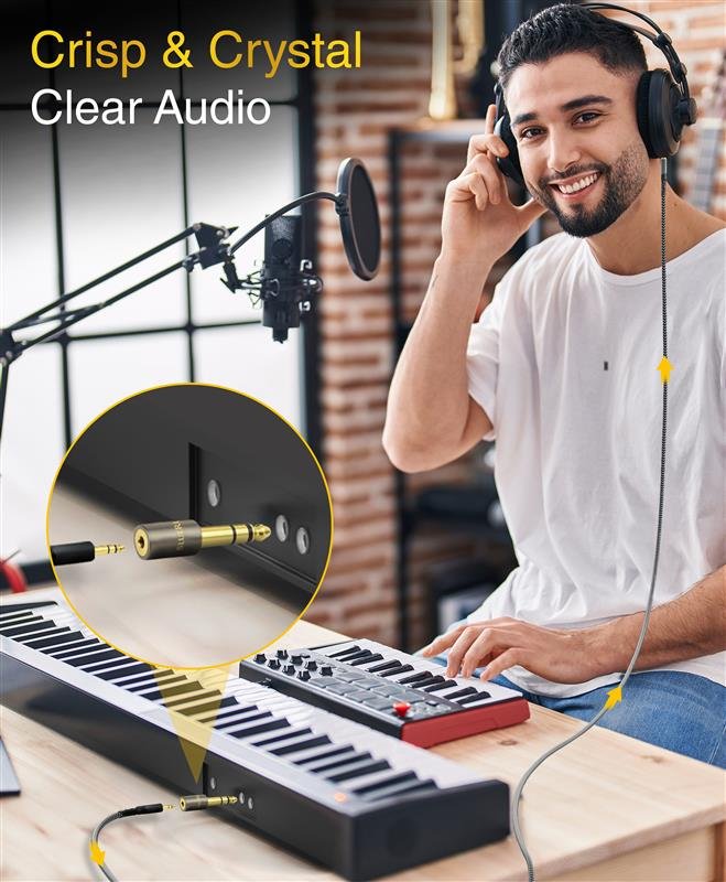 Gold-Plated Connectors | High-Fidelity Audio Transmission | Oxygen-Free Copper Core | Secure Plug Fit | Universal Compatibility | Noise-Free Signal | Tangle-Free Design
