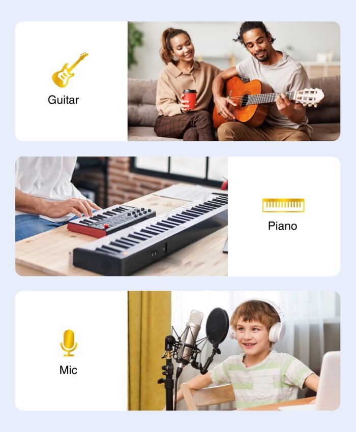Compatibility Headphones, Amps, Mixers, Keyboards, Audio Interfaces, Guitars
