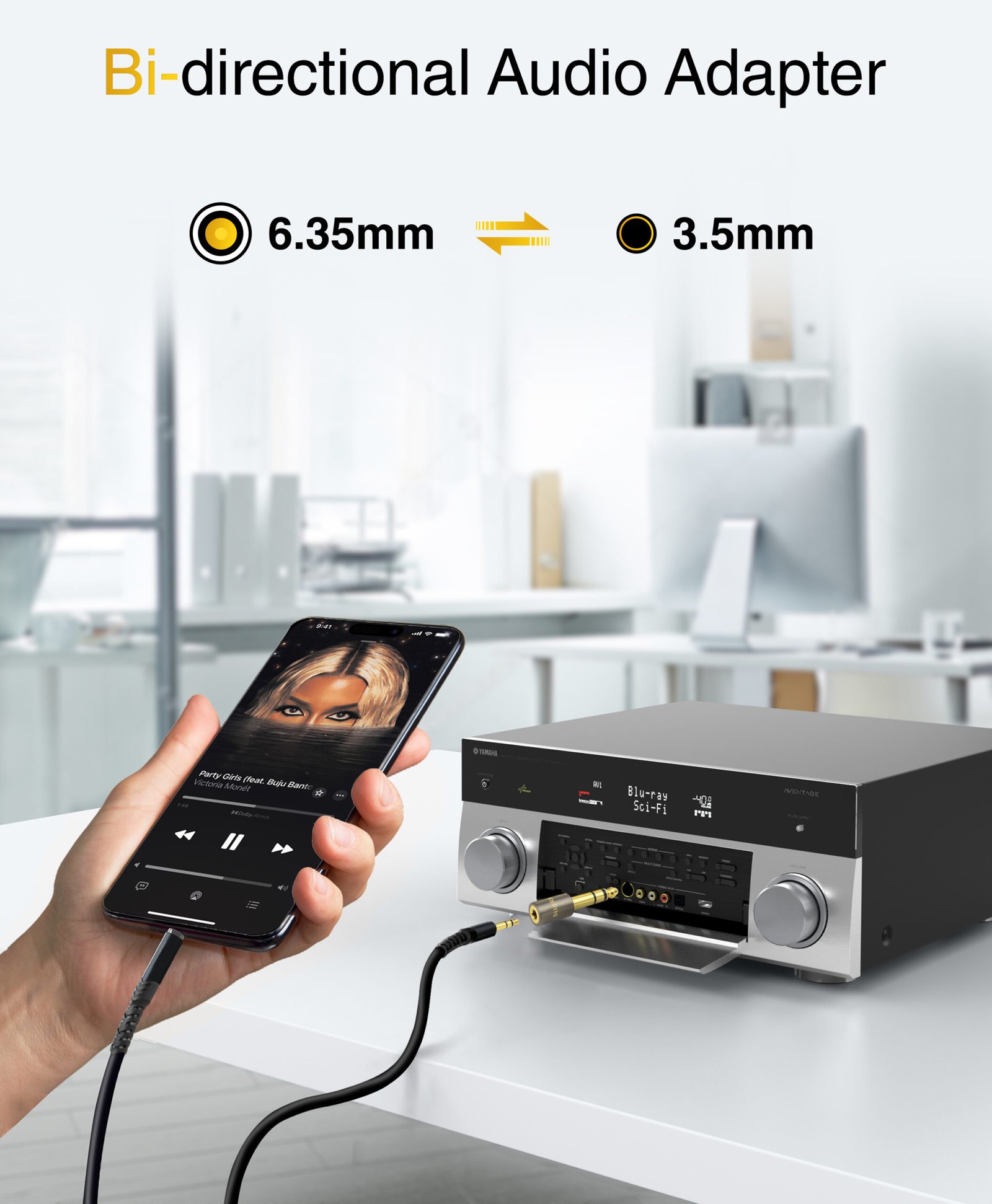 • This adapter supports audio transmission between devices with 3.5mm and 6.35mm connectors.