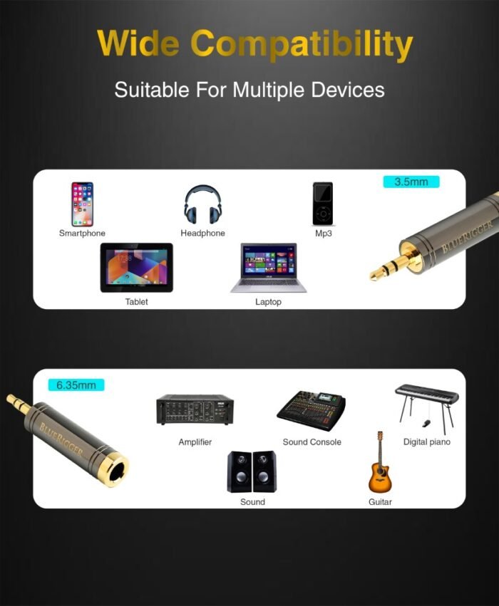 Key Features of BlueRigger 3.5 mm Male to 6.35mm Female Adapter