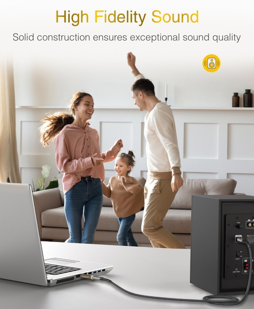 Gold-Plated Connectors | High-Fidelity Audio Transmission | Oxygen-Free Copper Core | Secure Plug Fit | Universal Compatibility | Noise-Free Signal | Tangle-Free Design