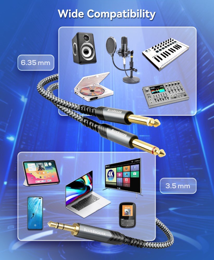 About BlueRigger 3.5mm to 2 port 6.35 Instrument Cable