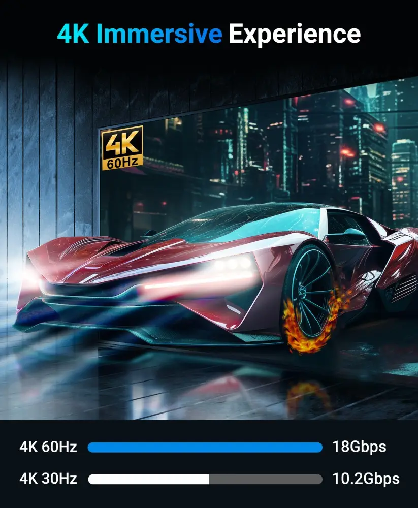 - This device is compatible with 4K@60Hz, 1080p, 720p, HDCP 1.4/1.3, 3D, 10.2Gbps bandwidth