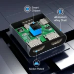 Its compact and sturdy metal body makes sure there is better heat dissipation and the device is durable. The splitter also comes with a USB power cable that will maintain a stable performance during longer hours of use.