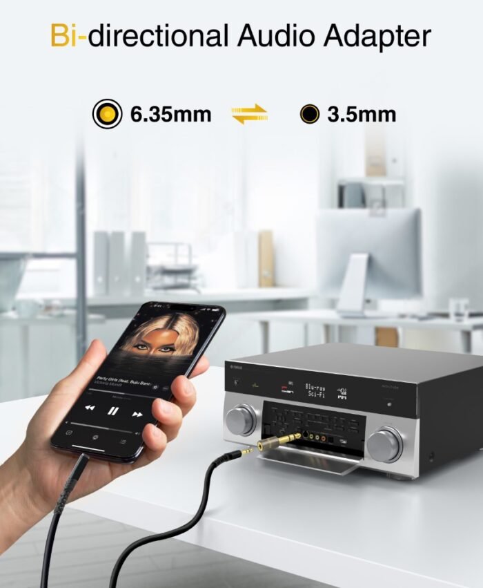 - This adapter supports audio transmission between devices with 3.5mm and 6.35mm connectors.