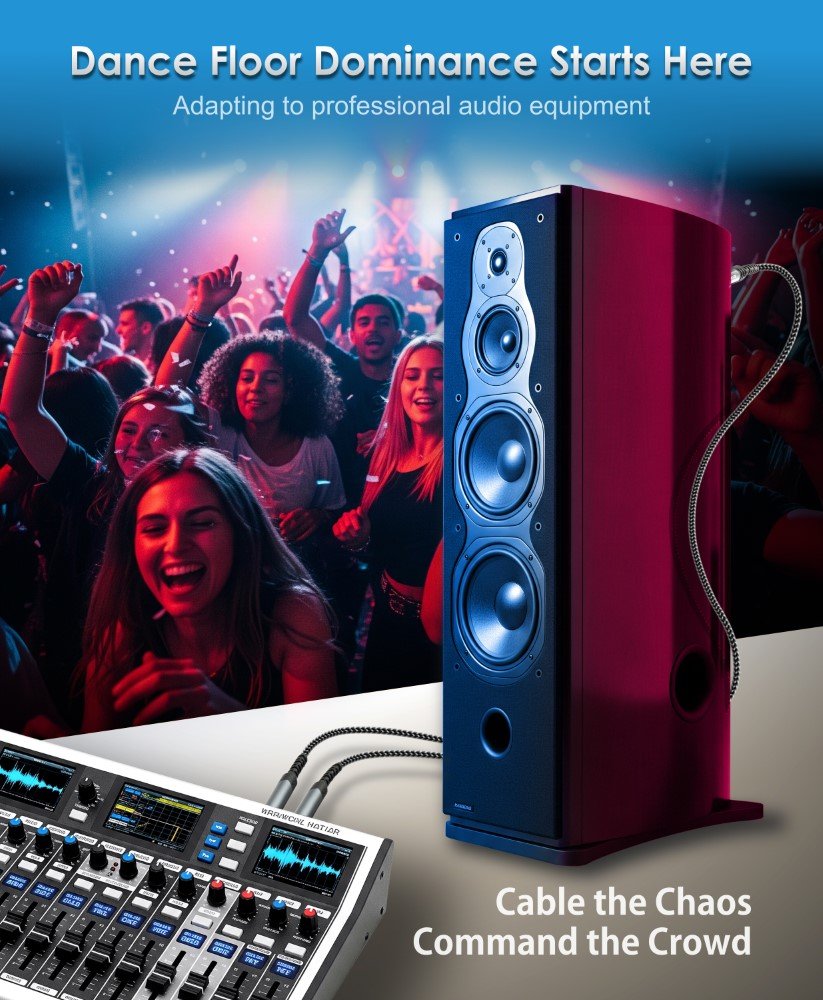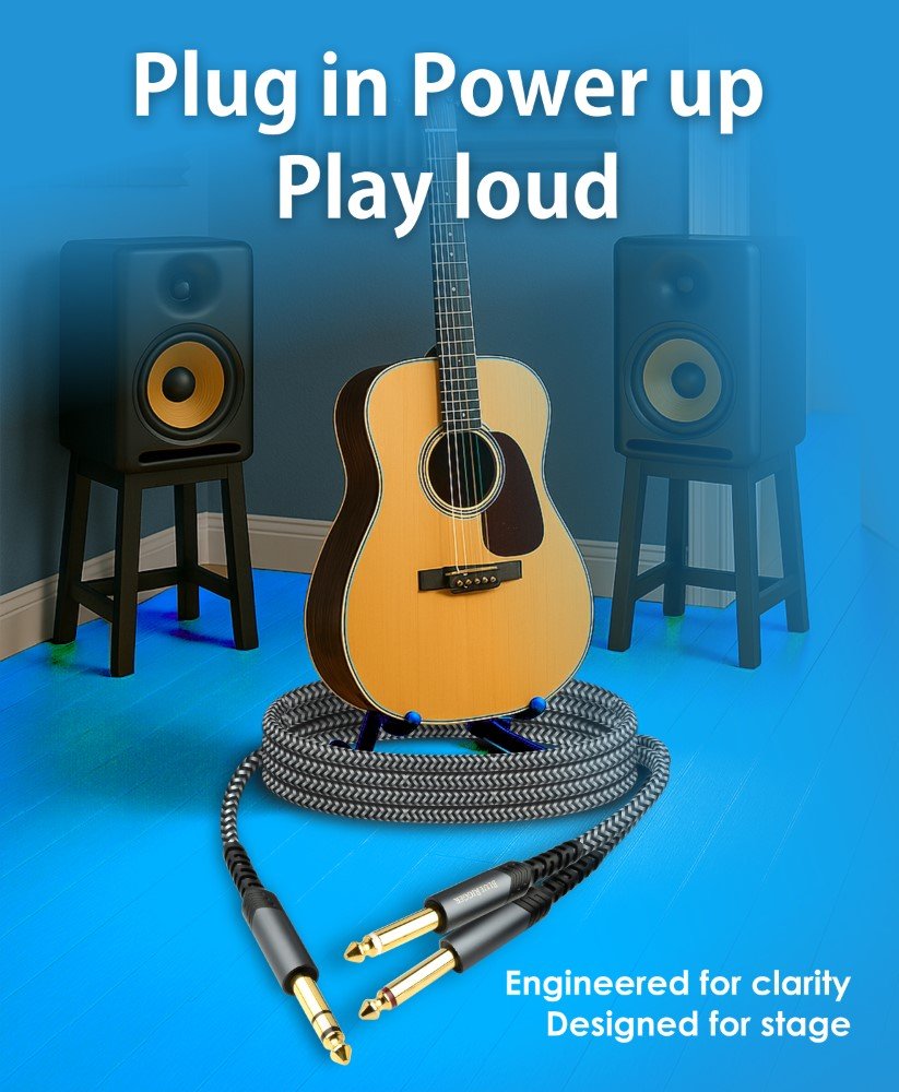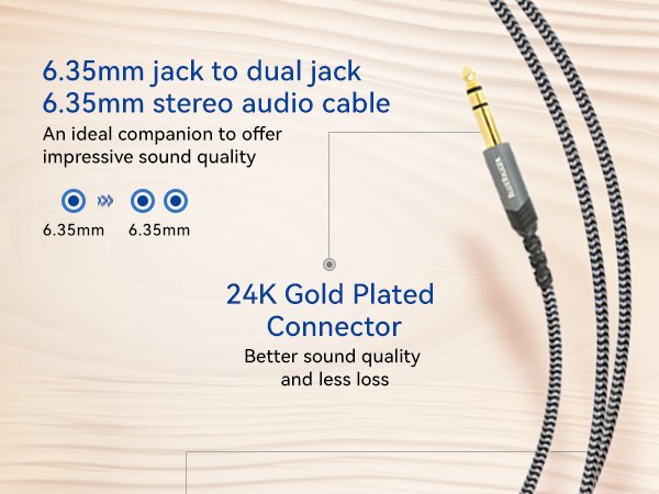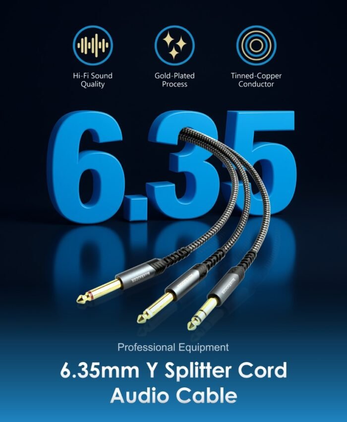 Dual 6.35mm Outputs | High-Fidelity Audio Transfer | Secure Locking Connectors | Premium Copper Conductors | Noise-Reduction Shielding | Flexible Durable Jacket | Plug-and-Play Performance