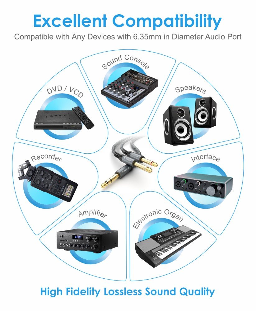 | Cable Function | Splits one 6.35mm mono signal into two separate 6.35mm outputs |