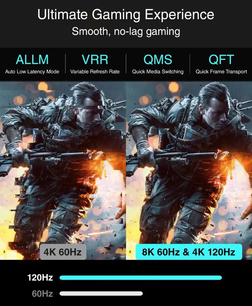 This cable supports 100% unspoiled high-speed 48Gbps bandwidth, allowing you to enjoy 8K@60 Hz and 4K@120Hz resolutions without any hassle.