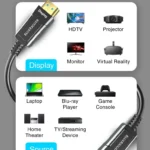 Compatible with universal gadgets including PS5, Xbox Series X, high-end GPUs, 8K TVs, and projectors, making it the best Optical 8K HDMI AOC cable for both entertainment and professional purposes.