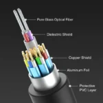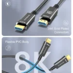 The Optical 8K HDMI AOC Cable is designed for individuals who demand premium quality in audio and video. Designed with futuristic fiber optic technology, this cable supports 48 Gbps bandwidth and promises a crystal-clear transmission of 8K@60 Hz and 4K@120Hz. It’s slender, durable, and lag-free, making it the best Optical 8K HDMI 2.1 AOC cable, which extends hundreds of miles in home theatre, gaming setups and professional installations.