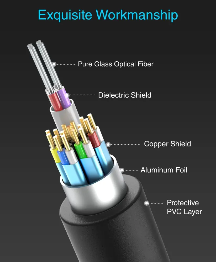 Crafted with 24K gold-plated connectors and a slim fiber optic core, making it easy to install and maintain long-term durability.