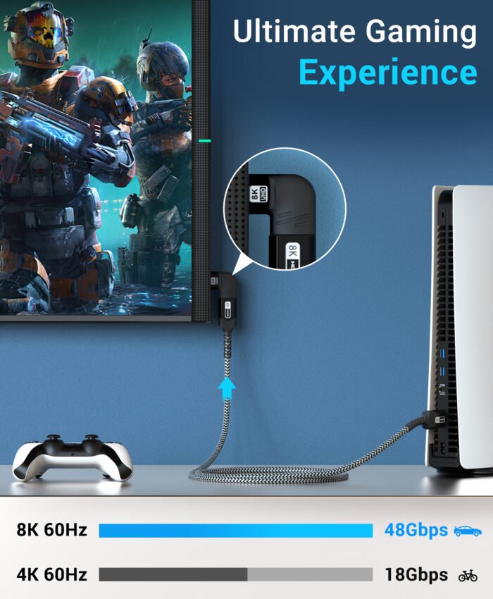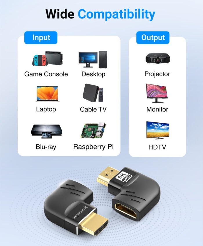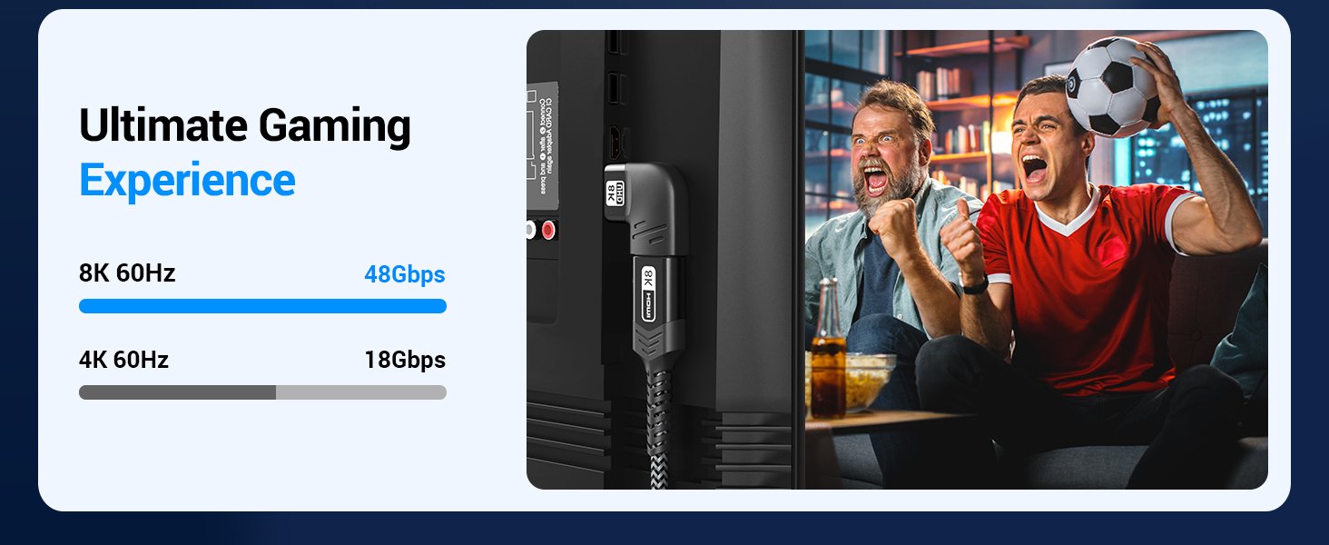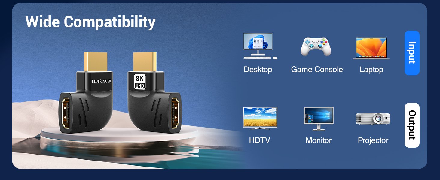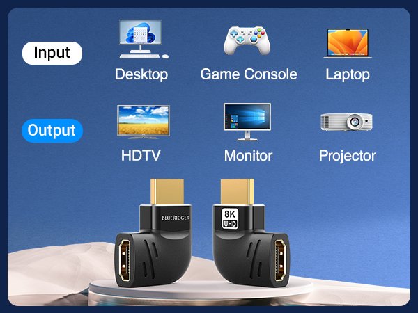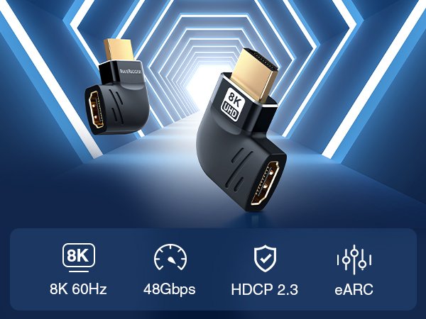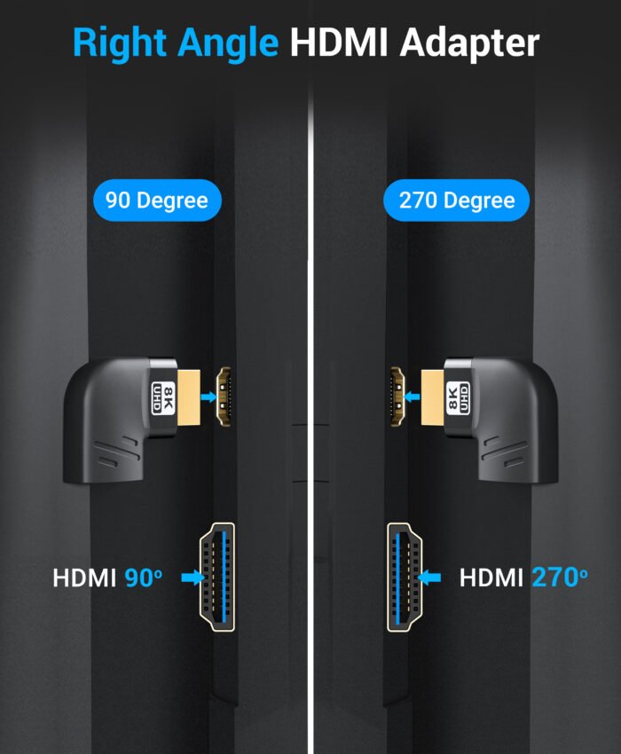 - This HDMI 270-degree adapter is capable of delivering high-definition video up to 8K @60Hz.