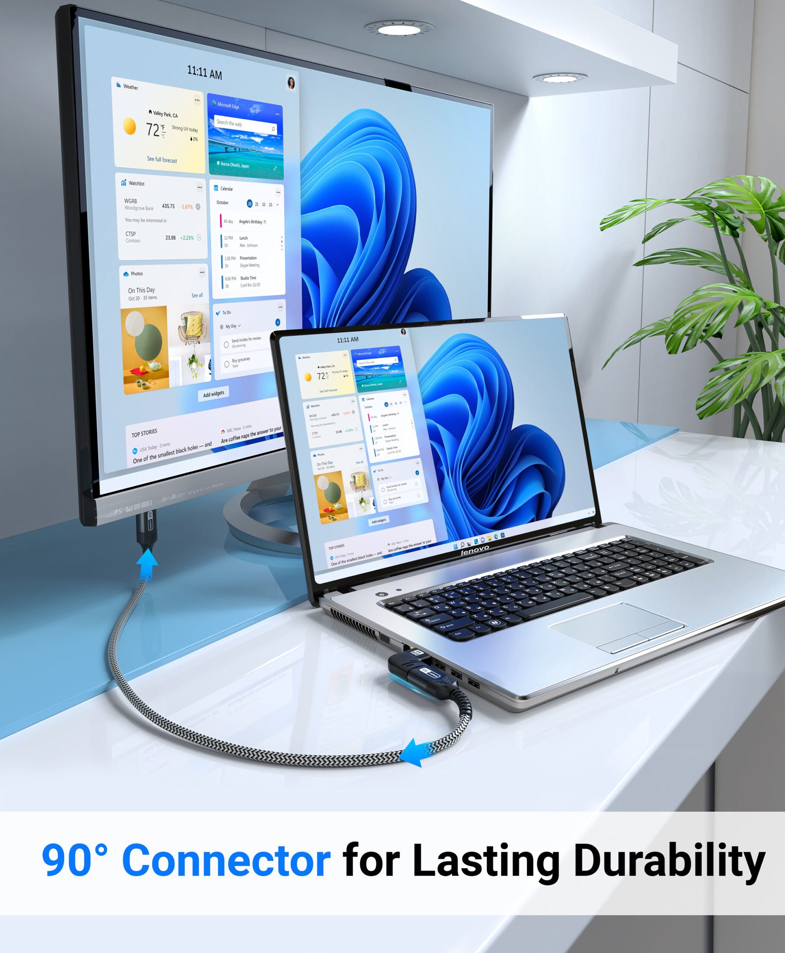 - This 270-degree adapter is perfect for wall-mount TVs and tight spaces behind monitors and desks.