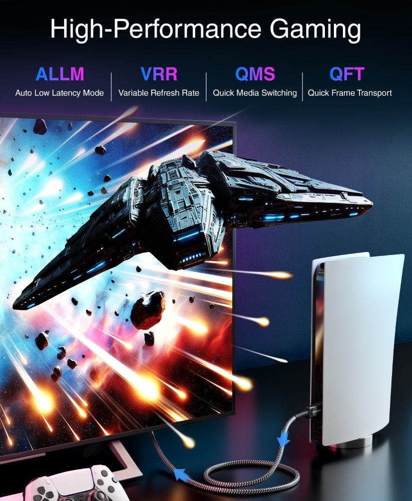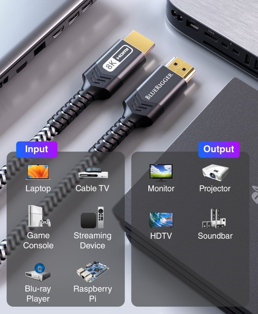 - This HDMI 8K braided 2.1 cable is blessed with revolutionary compatibility, which works best with PS5, Xbox Series X, Apple TV, Roku, and more.