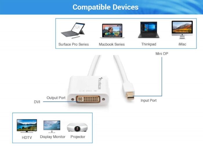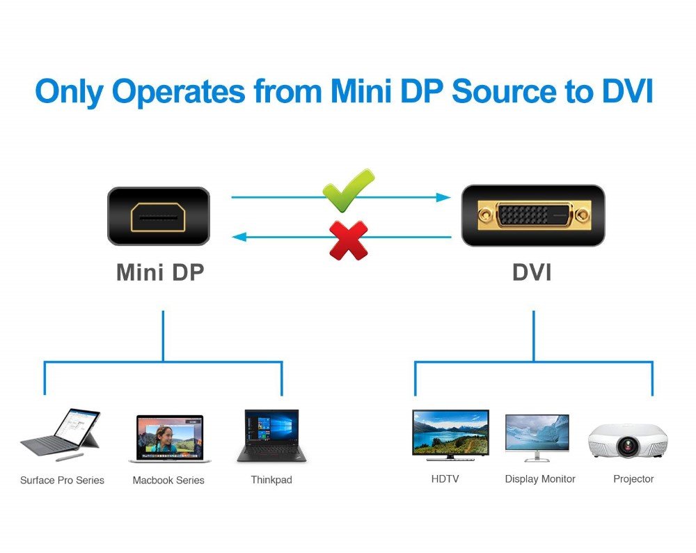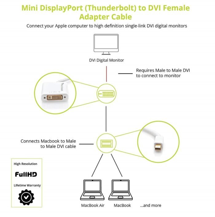 | Cable Type | Mini DisplayPort (mDP) to DVI Female Adapter |