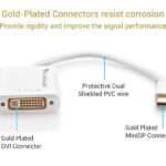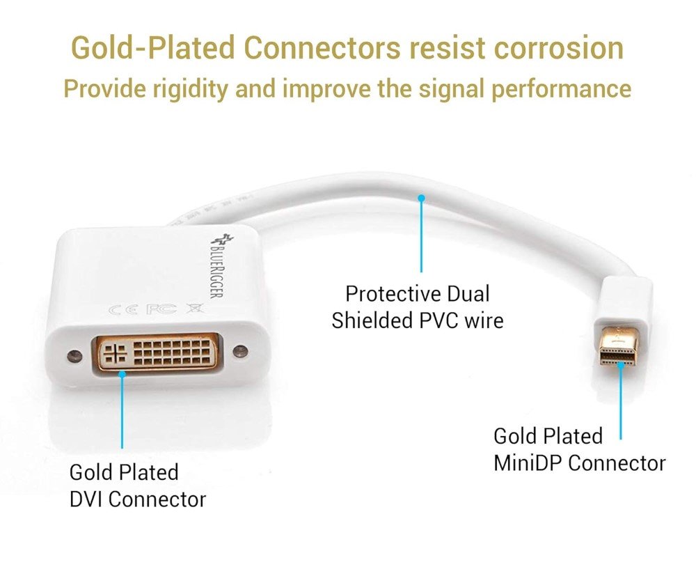 - This Mini DP to DVI Female adapter has Gold-plated connectors, reinforced joints, and advanced PCBA technology. All of these ensure durability, corrosion resistance, and long-lasting performance.