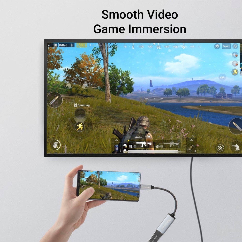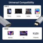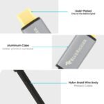 • Our Type C to HDMI Female Adapter is durable with a nylon braided jacket and 24k gold-plated connectors.