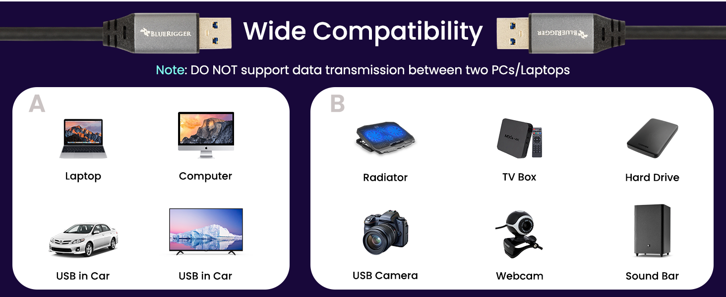 Key Features of USB 3.0 Type-A Male to A Male Cable