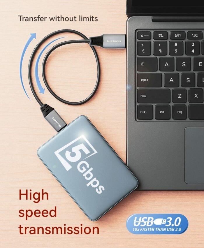 This cable can transfer data at a speed of 5Gbps, which is like 10x faster than any device with USB 2.0 and 1.1 ports. So basically, it is faster than the devices with previous standards.