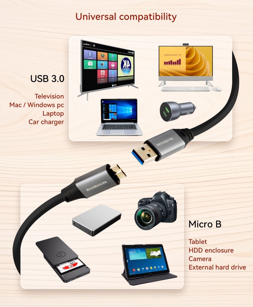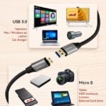USB 3.0 | Type-A to Micro-B Cable | SuperSpeed | Quick Sync | Backward Compatible | Foil Shielding | Reinforced Strain Relief | Durable PVC Jacket | Plug-and-Play | Universal Device Support | High-Performance Connectivity