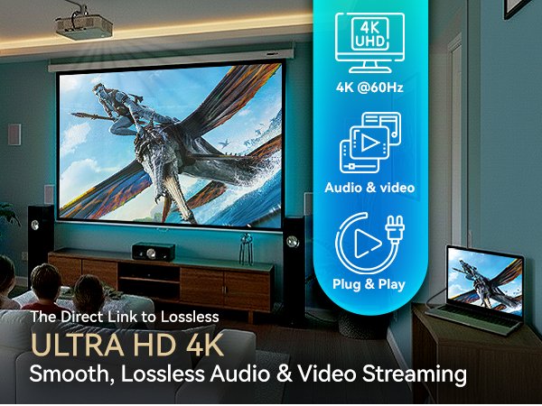 • This premium cable supports crystal visuals up to 4K@60Hz ultra-HD video.
