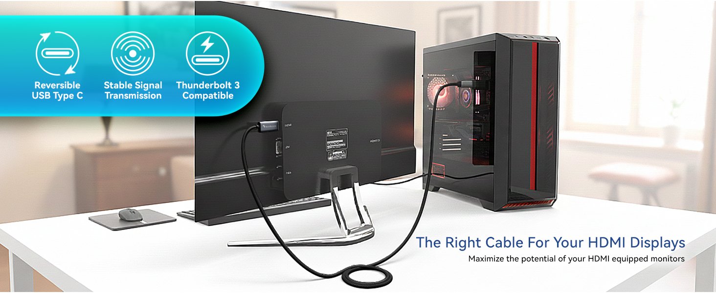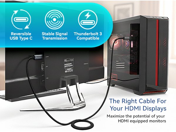 • Our Type C to HDMI cable is durable with a nylon braided jacket and 24k gold-plated connectors.
