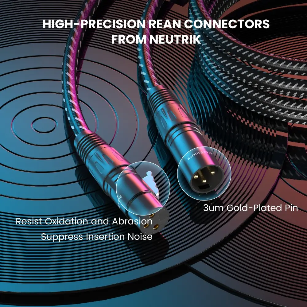 Rugged XLR cable. It's braided and will last longer than the ones I previously used. It says, these are rean connectors from neutrik? They look and feel like normal--okay quality--connectors to me. Nothing fancy. Good for the price.